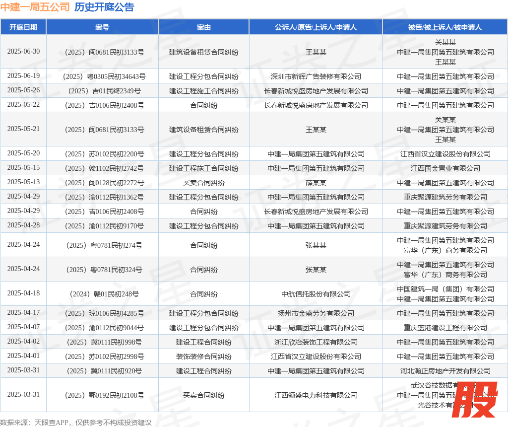 本站消息,根据天眼查APP显示金猪配资,近日公布了一则中建一局集团第五建筑有限公司作为被告/被上诉人的开庭公告,详细内容如下: